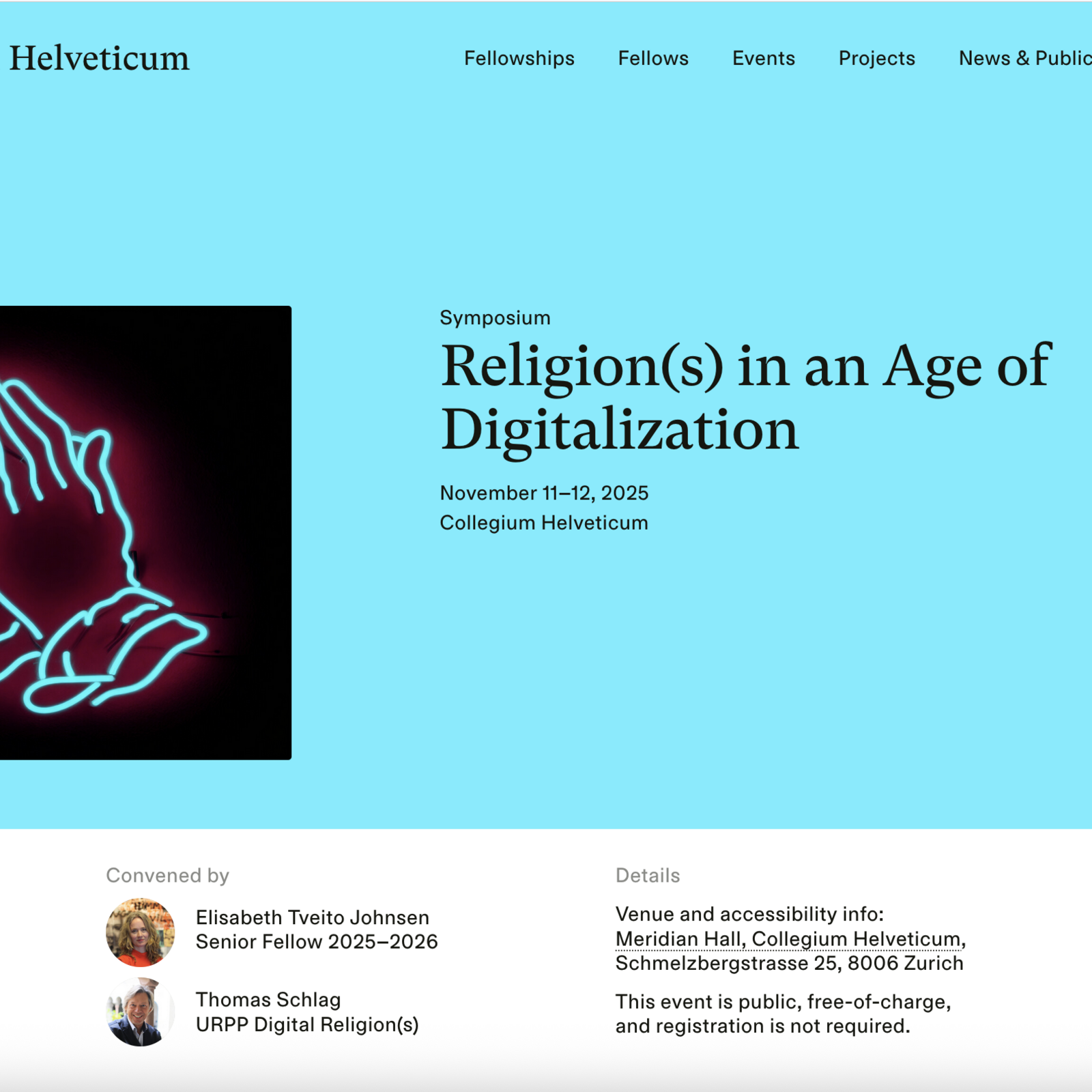 Meridian Hall, Collegium Helveticum, Schmelzbergstrasse 25, 8006 Zurich